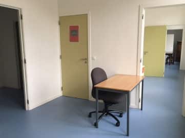 Een korte gang met trap, een woonkamer, een keuken, een toilet, een badkamer, een slaapkamer en 2 verhoorkamers. De bovenverdieping kan enkel gebruikt worden voor gerechtelijk werk (vb. huiszoeking en slechtnieuwsmelding).