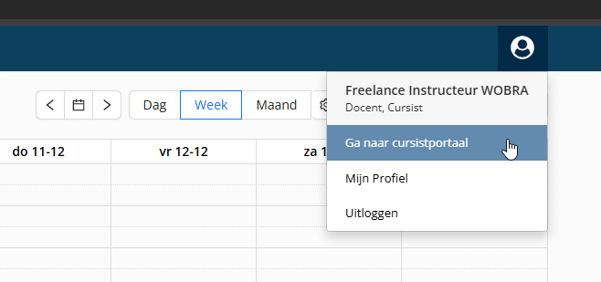 Na het inloggen kom je op de kalender van het docentenportaal.
