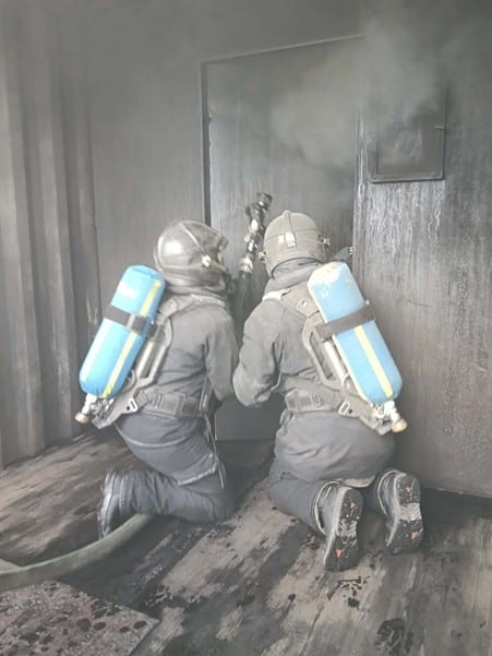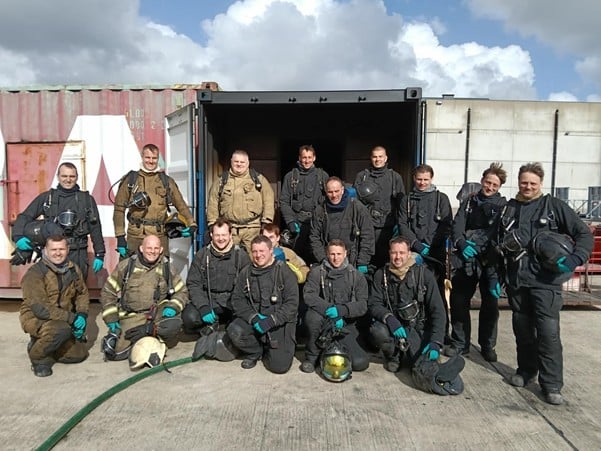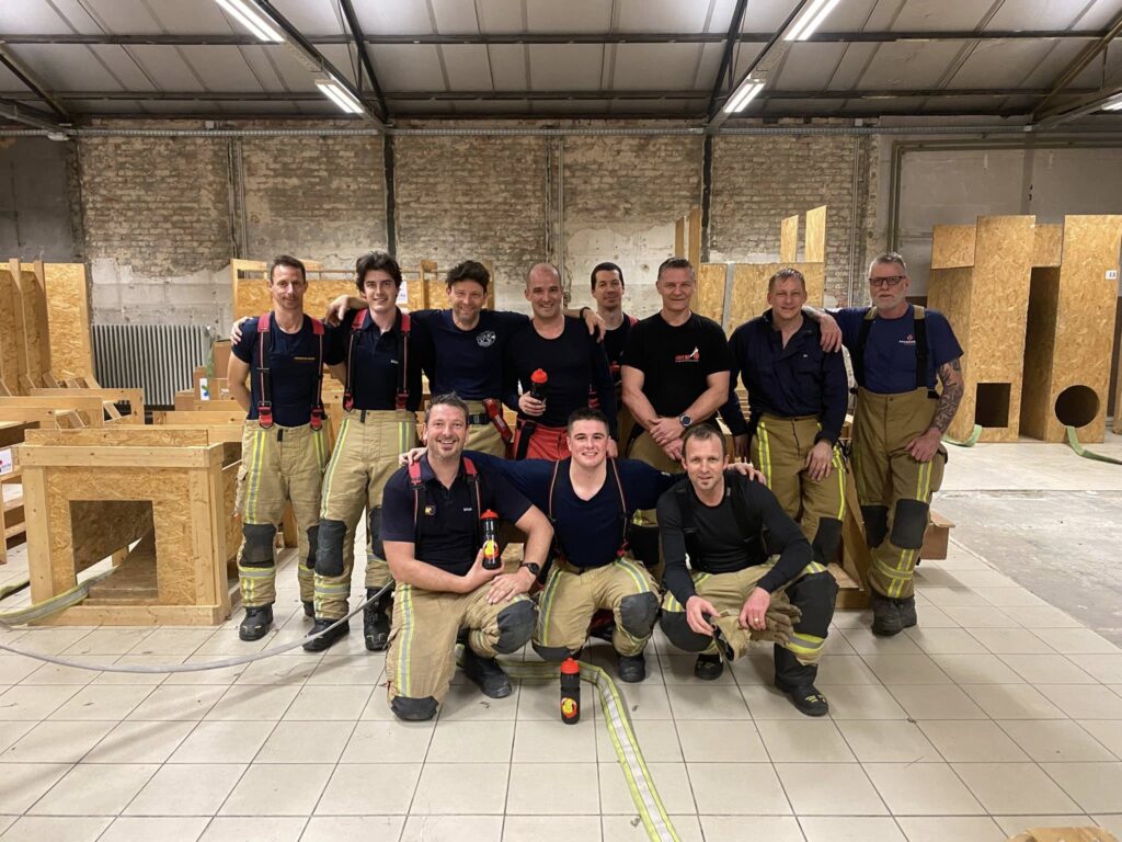 Onder de deskundige begeleiding van Pieter Maes , David Thieren en Gertjan Goemaere kregen de deelnemers een flinke dosis adrenaline te verwerken. De theorie in verband met May day, hoe reageren in een benarde situatie, technieken en zelfbeheersing onder adembescherming werd naadloos omgezet in praktische ervaringen.